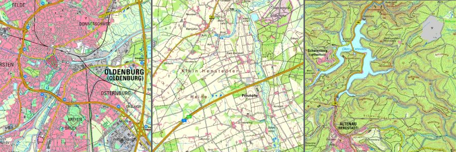 Darstellungsgröße und Dichte der TK50-Informationen sind als Kartengrundlage besonders geeignet für thematische Karten, die eine größere Fläche abdecken, wie z. B. Wanderkarten oder die Regionalkarte zur Geschichte und Landeskunde.