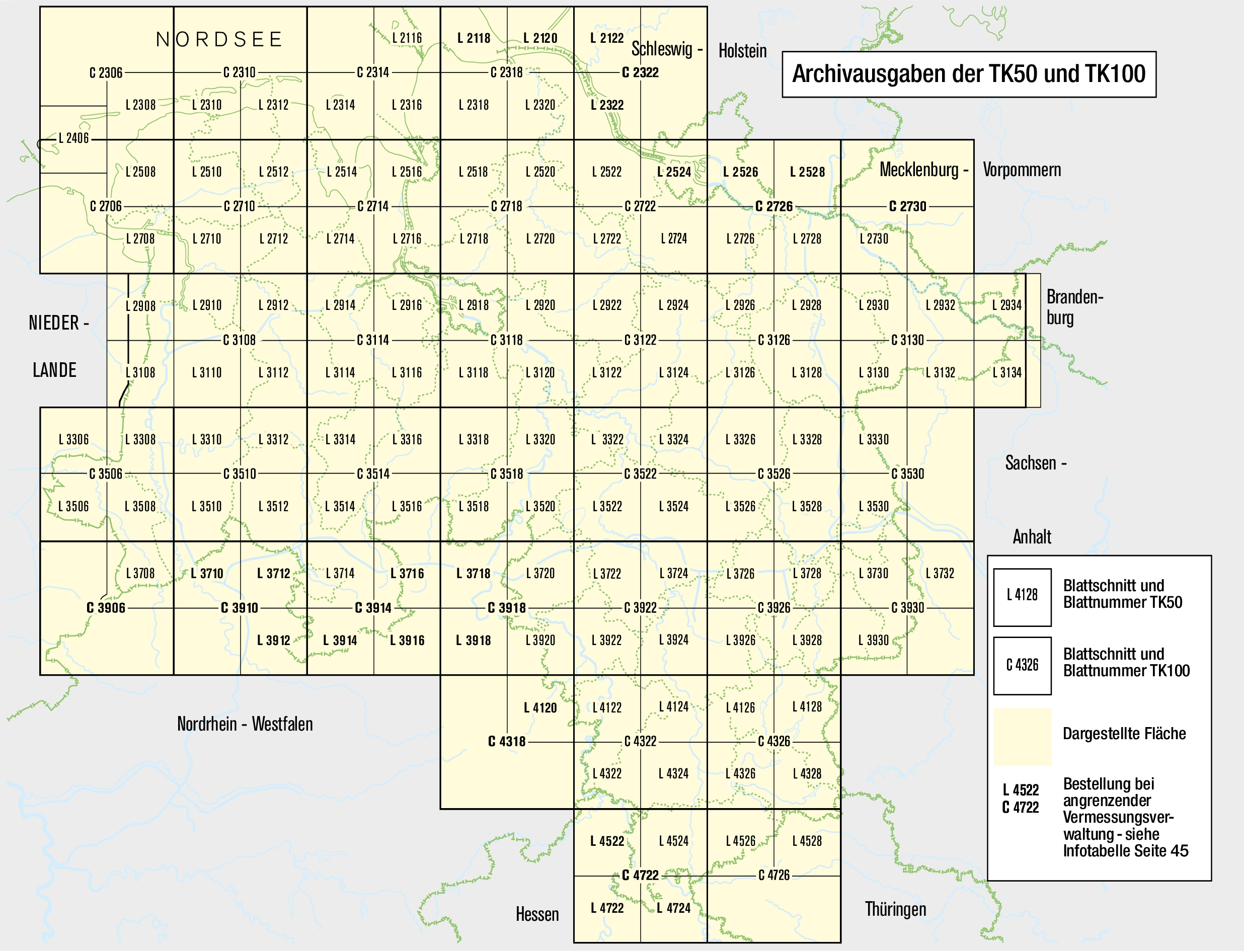 Archivausgaben der Topographischen Karte 1 : 50 000 - Blattübersicht (TK50)