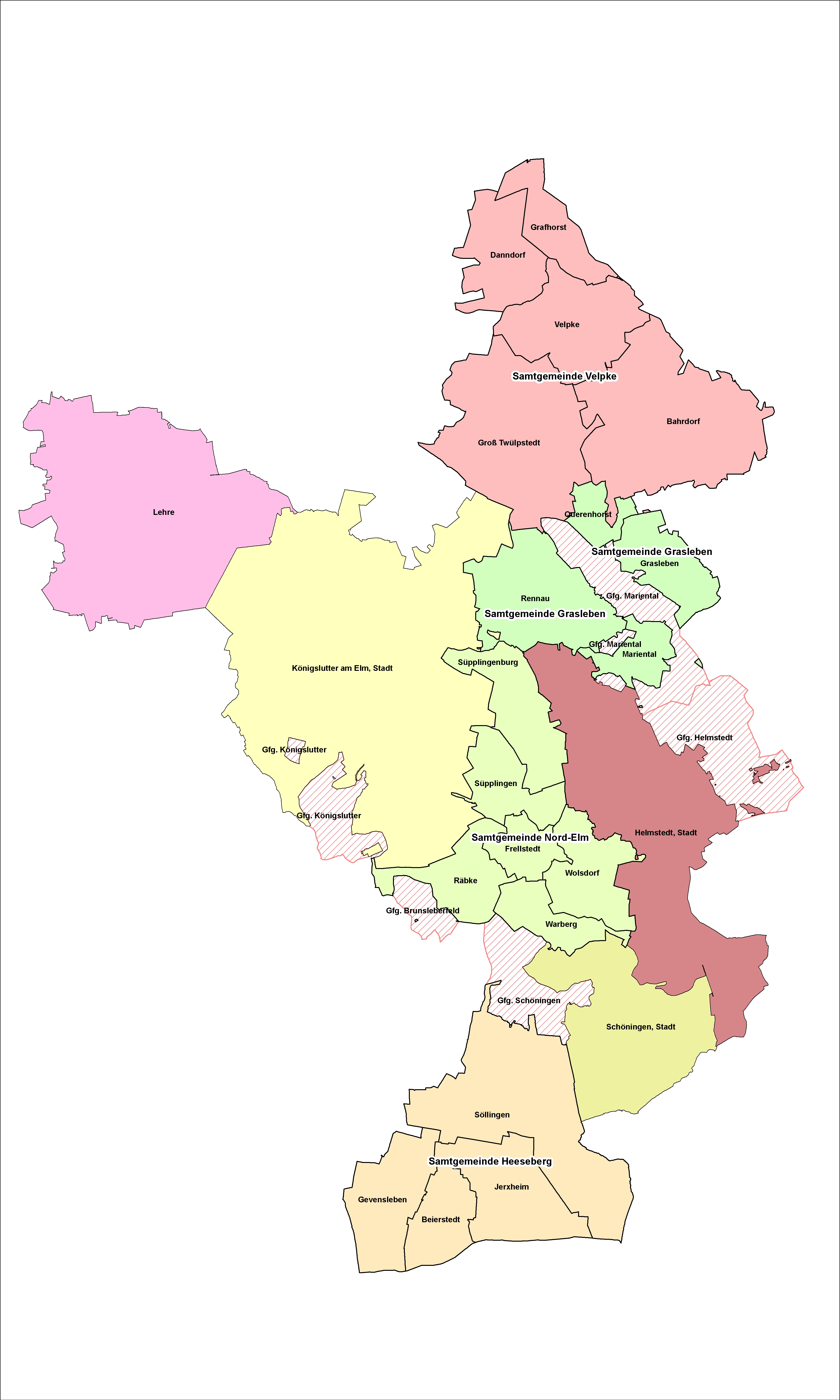 Der Landkreis Helmstedt wird von insgesamt 23 Städten und Gemeinden gebildet.
