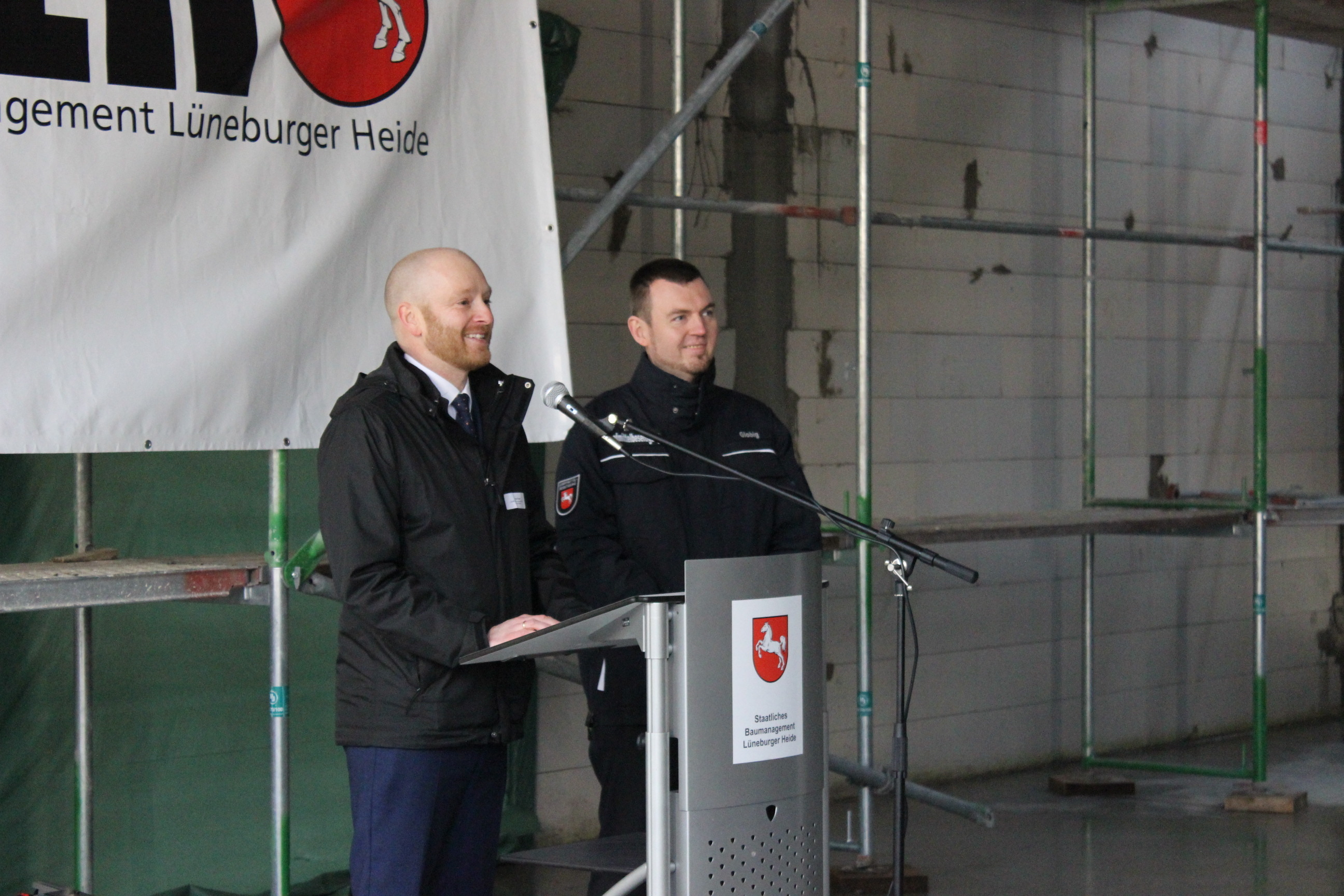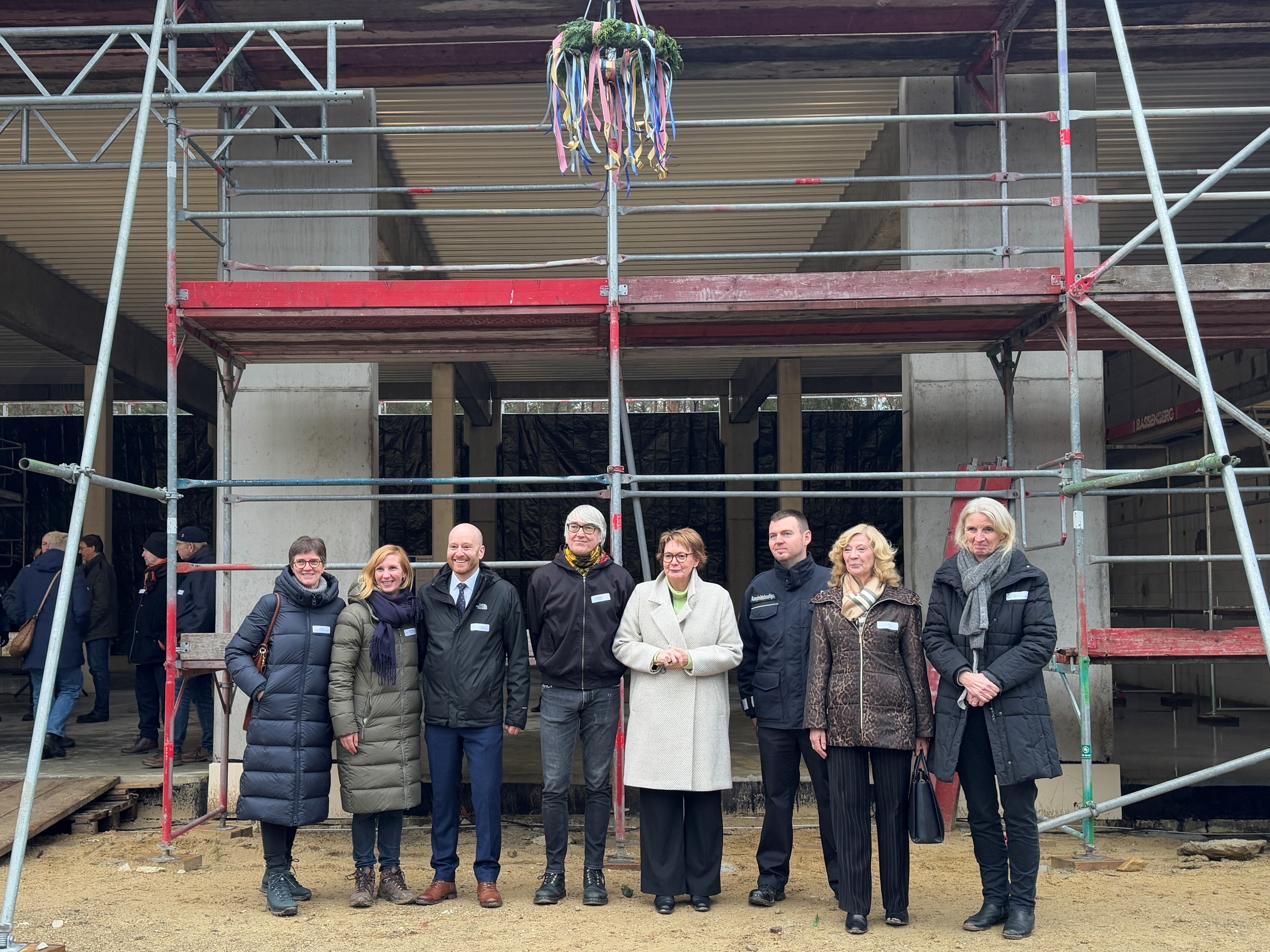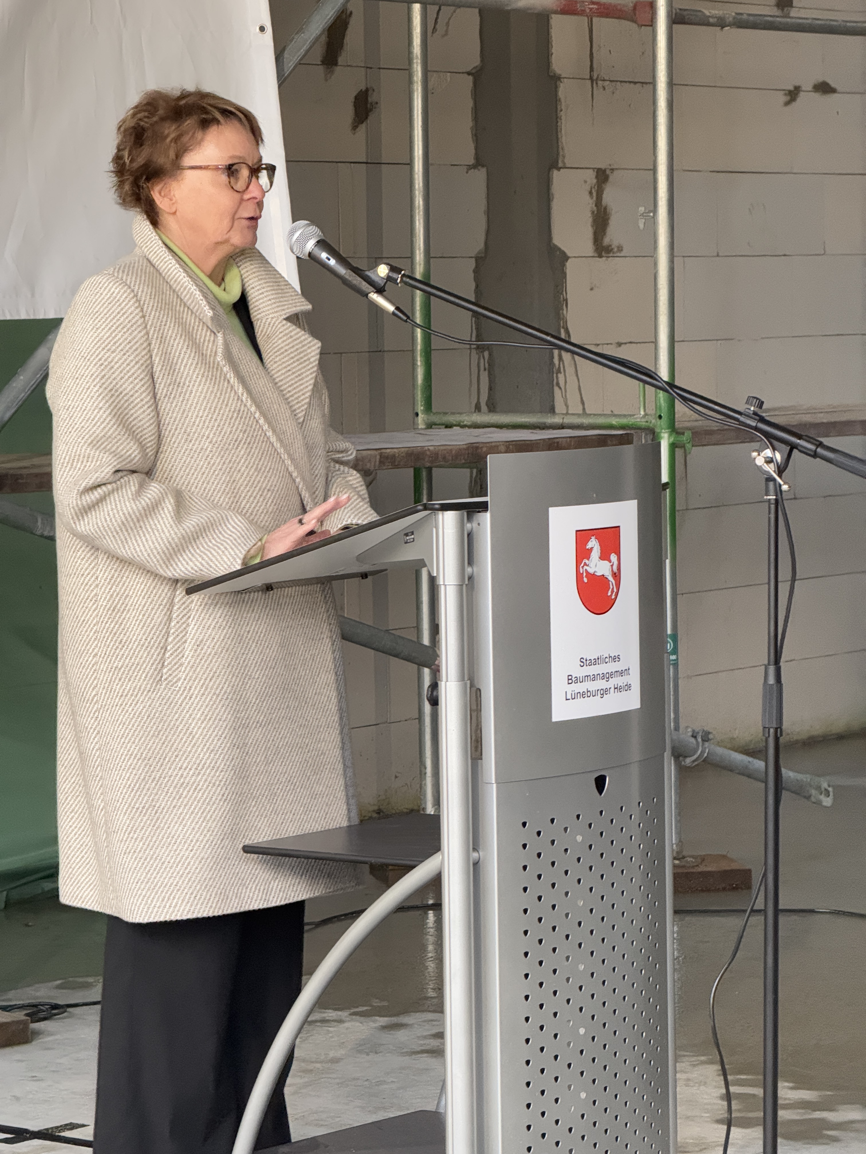 Das Staatliche Baumanagement Lüneburger Heide hat am 2. Dezember 2024 im Beisein der Niedersächsischen Ministerin für Inneres und Sport, Daniela Behrens, das Richtfest für eine neue Betriebsstätte des Kampfmittelbeseitigungsdienstes (KBD) in Munster gefeiert. Die Baumaßnahme ist dringend erforderlich, weil die bestehenden Gebäude nicht mehr den Anforderungen an eine moderne Arbeits- und Betriebsstätte entsprechen. Zu wenige und zu kleine Räume, provisorische Containerlösungen, fehlende Gebäude für die Munitionsbearbeitung und eingeschränkte Bunkerkapazitäten erschweren schon länger die Arbeit der Kampfmittelbeseitiger.