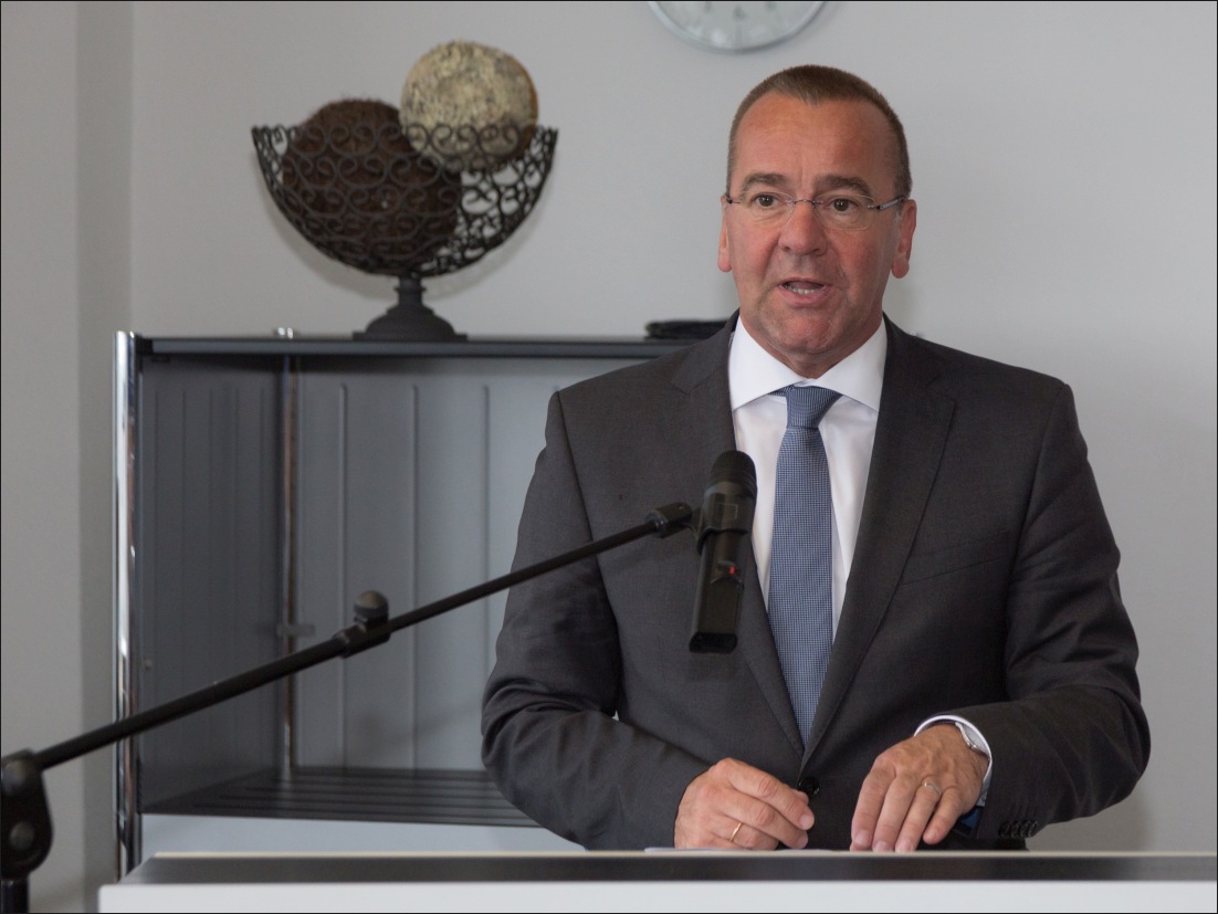 Minister Pistorius hatte sichtlich Freude am Termin. Keinerlei Sorge habe er, dass das LGLN gerade mit Blick auf die aktuellen Herausforderungen durch die Digitalisierung und den demografischen Wandel mit Golibrzuch den richtigen Mann an der Spitze habe. Seine berufliche Biografie mit starken Berührungspunkten zur IT, Verwaltungsmodernisierung, Kommunikation und Haushalt prädestiniere ihn geradezu für diese Aufgabe, auch wenn er der erste "Nicht-Geodät" an der Spitze des LGLN, bzw. der Vorgängerinstitutionen, sei. "Sie übernehmen ein gut geführtes Haus", wandte sich Pistorius an Golibrzuch mit Blick auf die anwesenden Vorgänger und bezeichnete das LGLN, beziehungsweise die VKV
