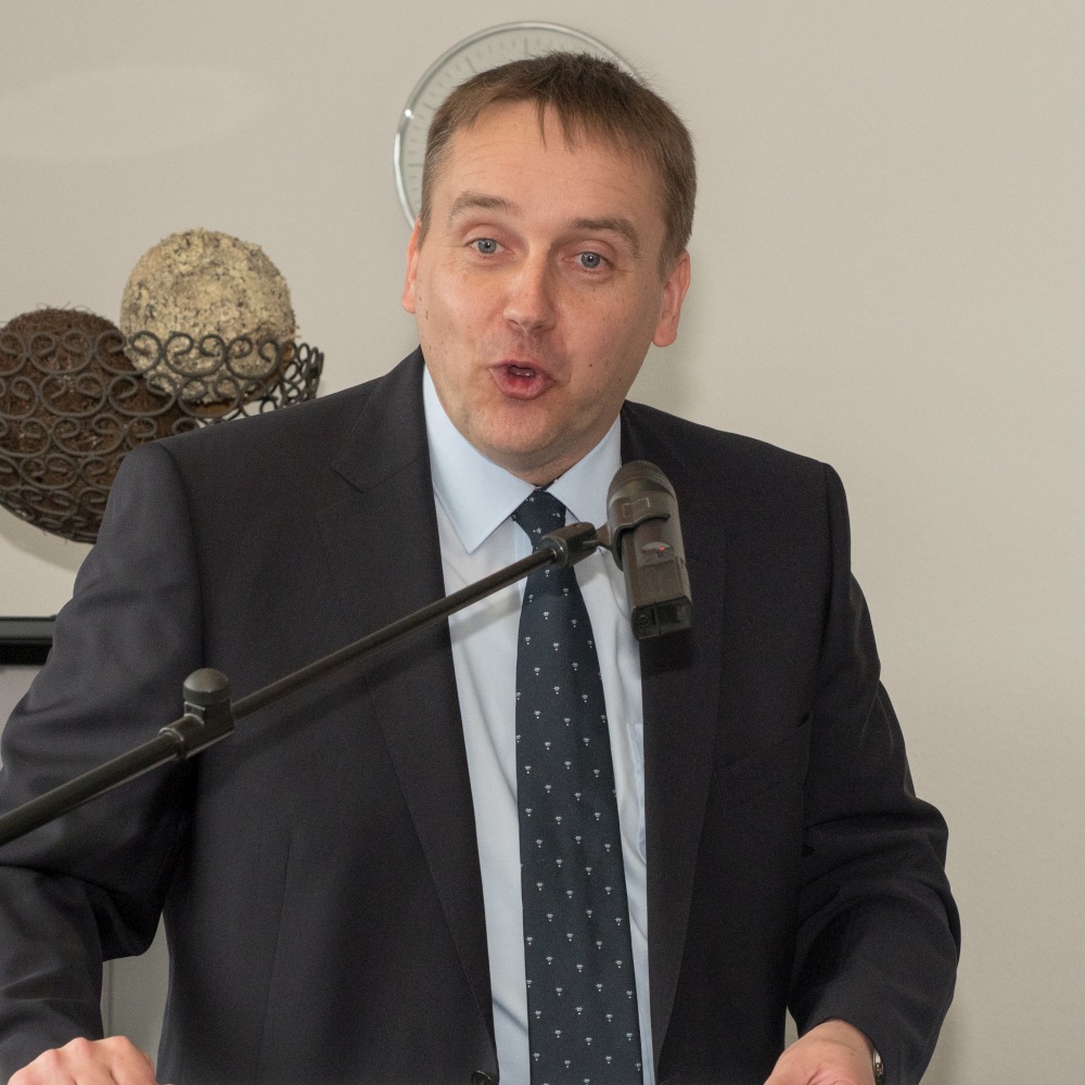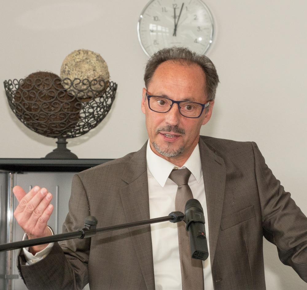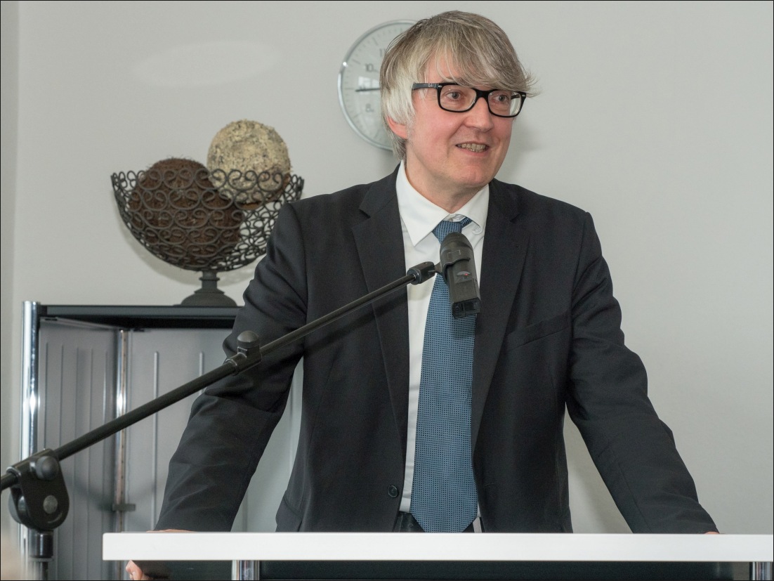 Michel Golibrzuch nutzte neben dem Dank für die vielen netten Worte und Wünsche die Gelegenheit, seine bisherigen Eindrücke zusammenzufassen und die Herausforderungen der Zukunft aufzuzeigen. Er verwies auf bahnbrechende Veränderungen, die durch die Digitalisierung auf die VKV zukämen, auf neue Wege in der Kommunikation, die künftig beschritten werden müssen, und darauf, dass auch die lebensälteren Kolleginnen und Kollegen gefordert seien, mitzugestalten und ihre Erfahrungen einzubringen. „Ich habe hier in den ersten Wochen ein hochmotiviertes Team kennen gelernt. Das hat mich begeistert und ich freue mich darauf, mit Ihnen die Zukunft des LGLN zu gestalten“, schloss er seine